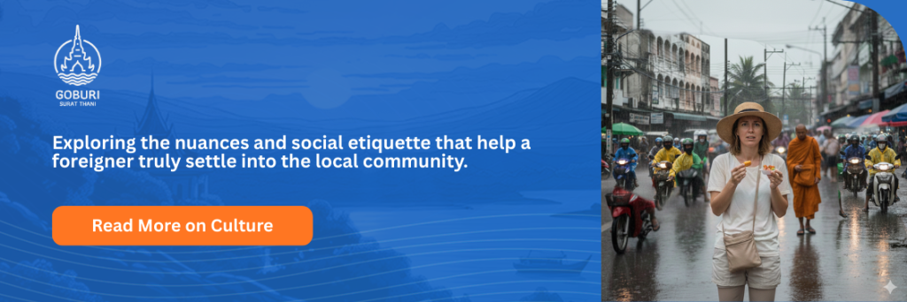 • Night Markets: Surat Thani’s famous night market (San Chao Market) thrives because the air is cooler, allowing people to browse comfortably. Understanding this shift is vital for your social integration; if you try to meet people at noon, you’ll likely find them hibernating in air-conditioned malls.