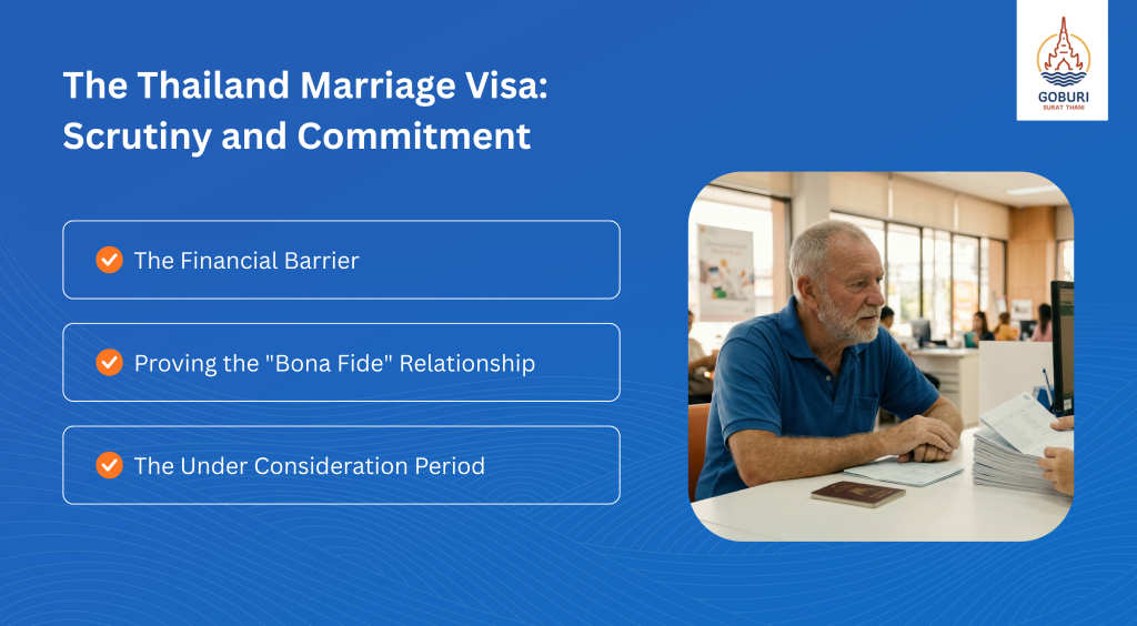 For those married to a Thai national, the Thailand Marriage Visa (an extension based on marriage) is the primary residency option. While it is often compared to the retirement visa, the family visa reality is that the marriage route involves significantly more paperwork and physical investigation.